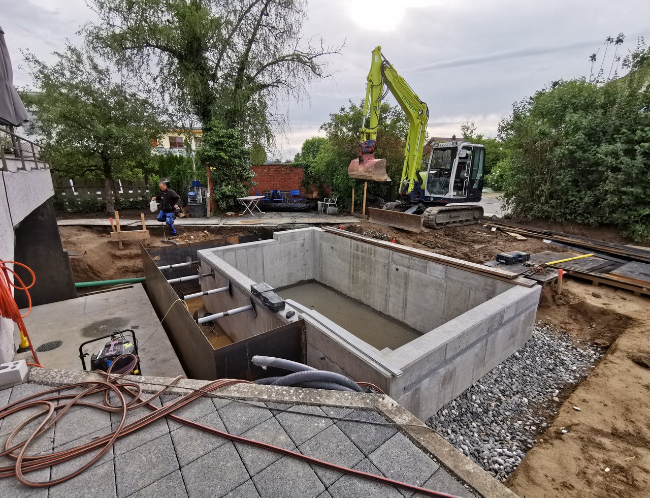 Unsere Poolbauer haben pünktlich zu den Sommerferien einen vielseitigen und harmonischen Familiengarten gestaltet. Die Gartenbesitzer haben sich für einen Naturpool mit biologisch gereinigtem Wasser entschieden. Mit optimaler Raumausnützung wurde das Betonschwimmbecken in die neue Gartengestaltung integriert. Separate Schwimmteichzonen umrahmen das Poolbecken und bieten Platz für verschiedene Wasserpflanzen und Seerosen.