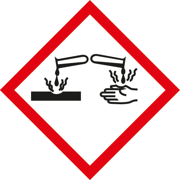 GHS05 Ätzend, GHS07 Achtung Gesundheitsschädlich, GHS09 Umweltschädlich