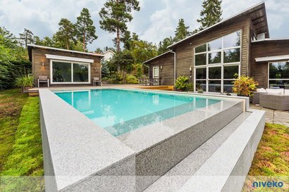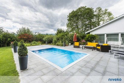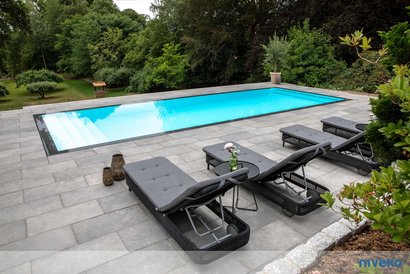 Bei der Variante «Underflow» verschwindet die Wasseroberfläche unter der Terrasse. Eine perfekte Wahl, wenn Kinder im Pool toben.